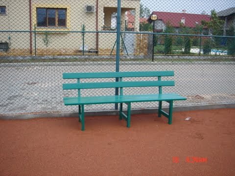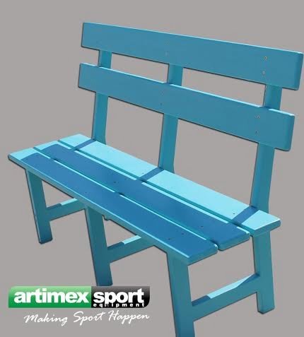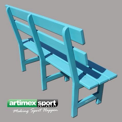 Banca pentru terenuri de tenis produsa de Artimex Sport cu sezutul si spatarul din lemn.