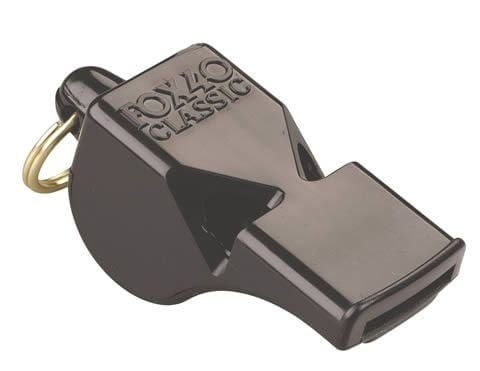Fluier arbitru FOX CLASSIC, fara bila, culoare neagra, cu snur.
