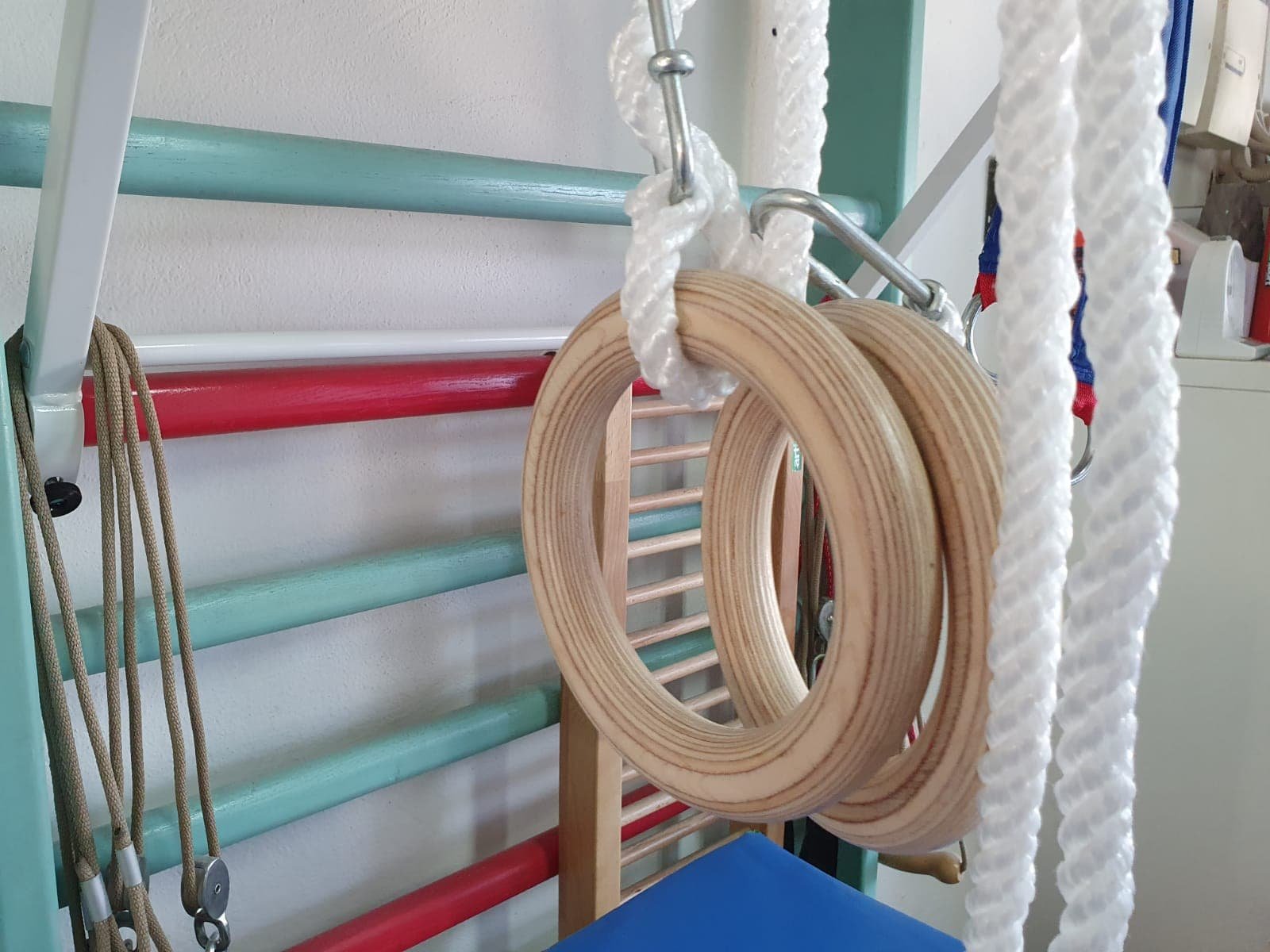 Setul de inele se poate utiliza pentru diferite exercitii fizice (rows, chinups etc).