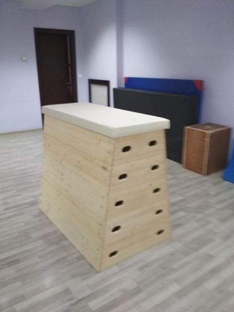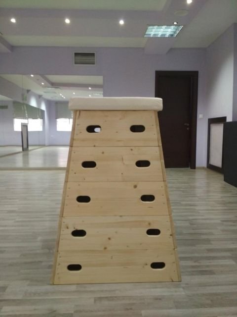 Lada gimnastica trapezoidala produsa de Artimex Sport, realizata din lemn stratificat de molid fara noduri, cu grosimea de 18 mm.