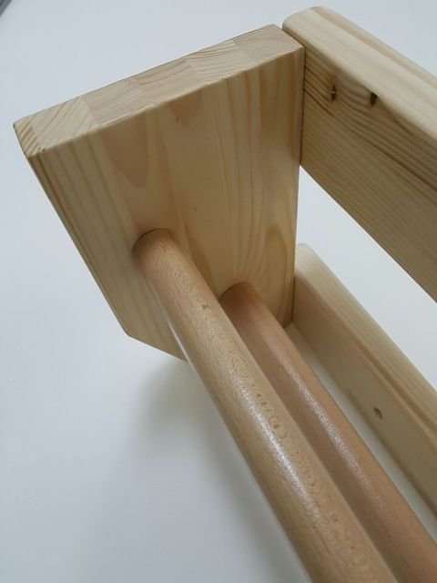 Bara de prindere este ovala si este produsa din cherestea de fag cu diametrul de 40 mm.