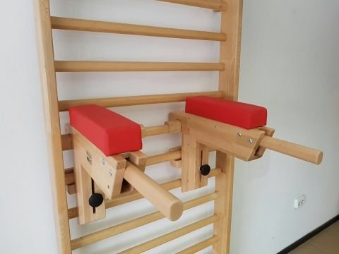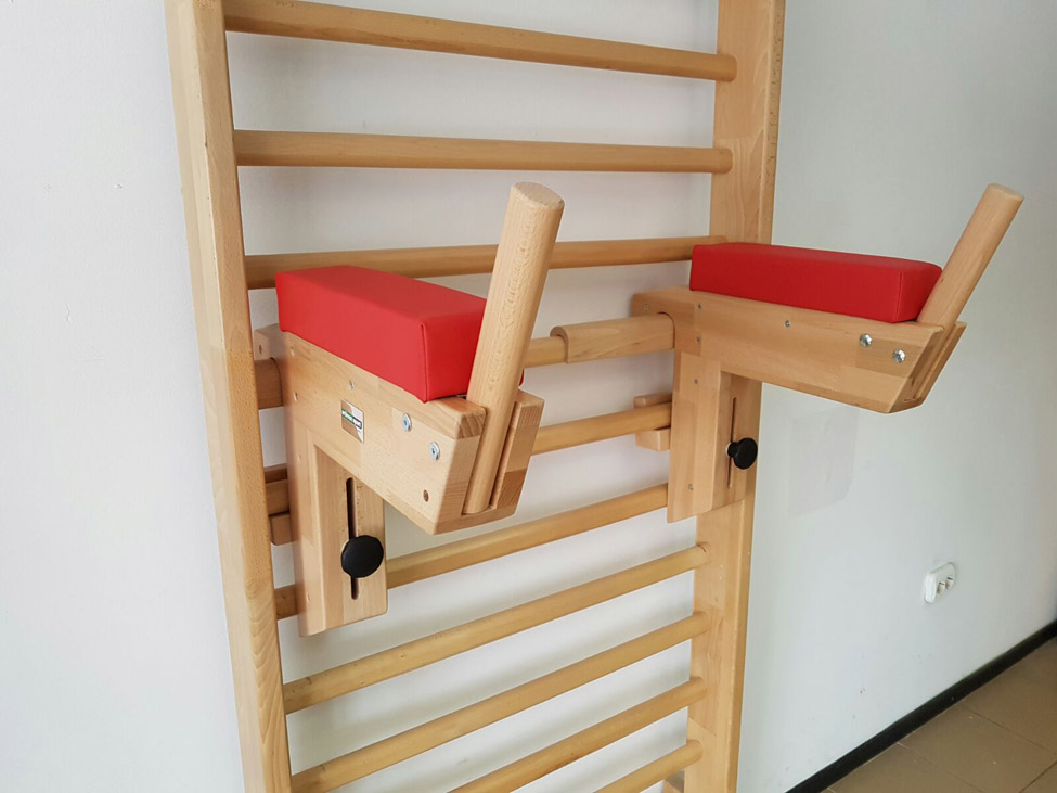 Manerele din lemn se fixeaza pe spatele barelor spalierului pentru a asigura stabilitate in timpul utilizarii.