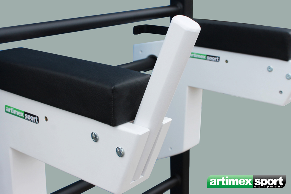 – fixarea (rigidizarea) manerelor in plan vertical permite fixarea coatelor pe cele doua perne cu o priza foarte buna a mainilor, putandu-se astfel efectua exercitii combinate pentru antrenarea muschilor abdominali, intercostali, oblici externi precum si a cvadricepsilor femurali.