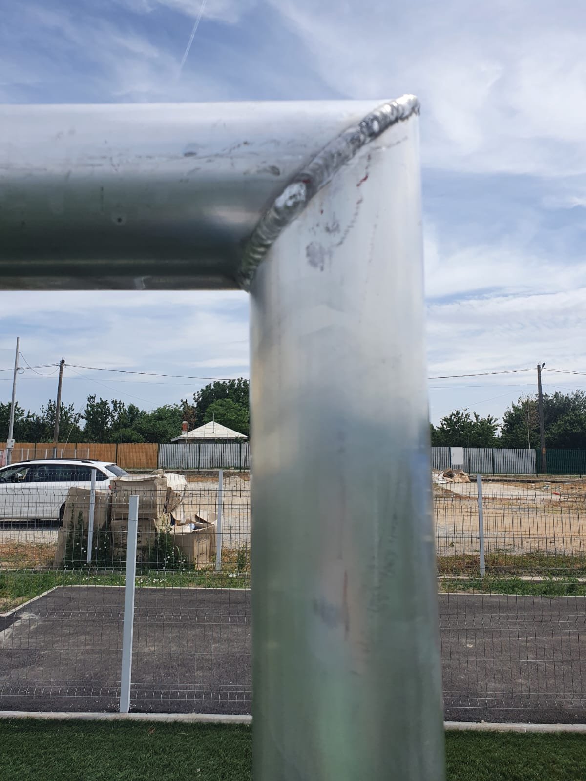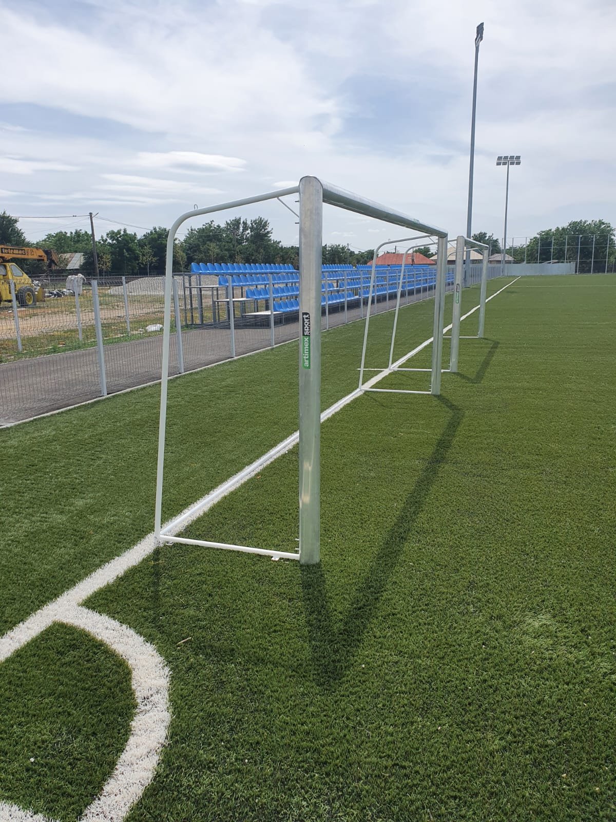 Porti fotbal mobile produse de Artimex Sport, din duraluminiu, profil oval 120 x 100 mm.