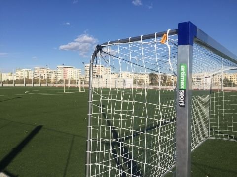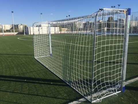 Porti fotbal produse de Artimex Sport, din dur aluminiu profil patrat 80 x 80 mm, spatele portilor si barele de sustinere a plasei sunt din teava metal profil rotund, vopsita in camp electrostatic.