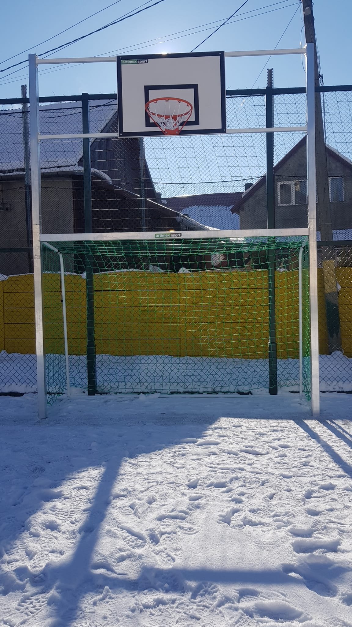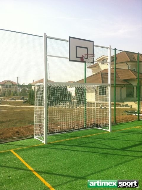 PoartI fotbal cu panou baschet produsa de Artimex Sport cu dimensiunea de 3 x 2 m, realizata din dur aluminiu profil patrat 80 x 80 mm pe care este atasat panoul de baschet cu dimensiunea de 1200 x 900 mm (cod 160). Panoul include inel cod 261 si plasa inel. Inaltimea inelului este la 3,05 m de la suprafata de joc.