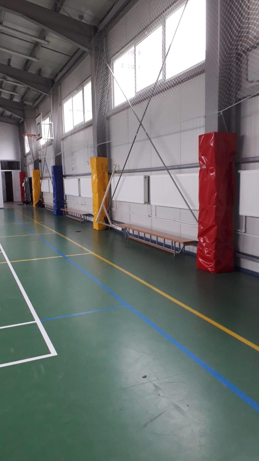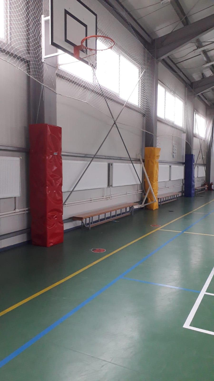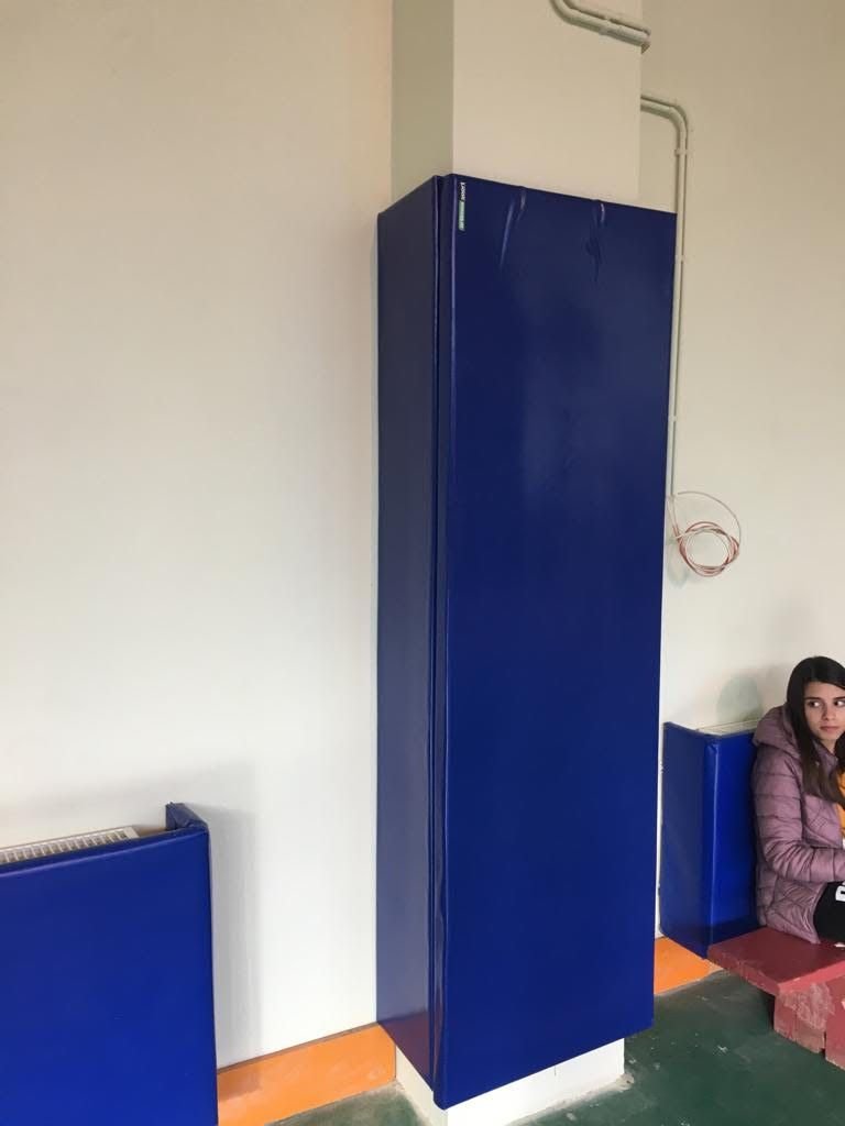 Protectia poate fi montata pe pereti sau pe stalpii de sustinere a salilor de sport.