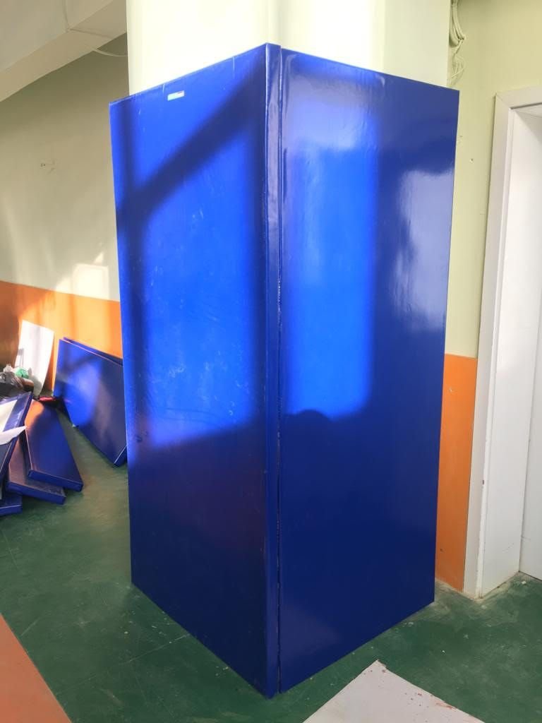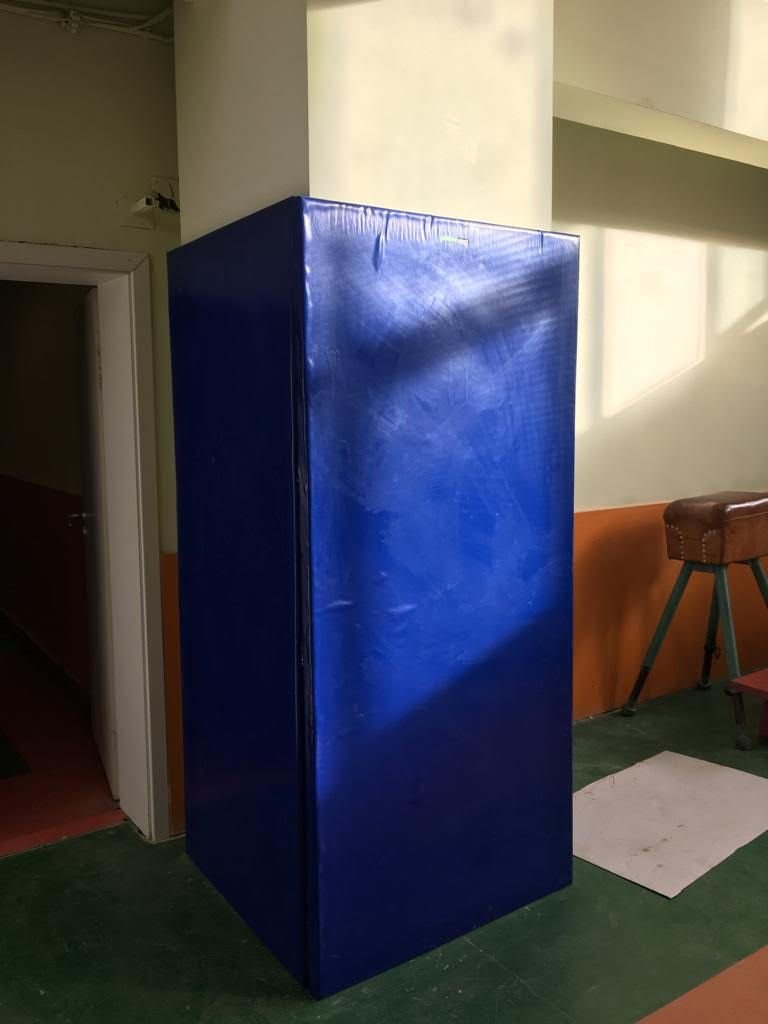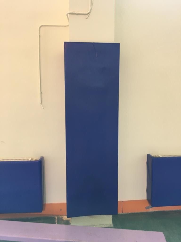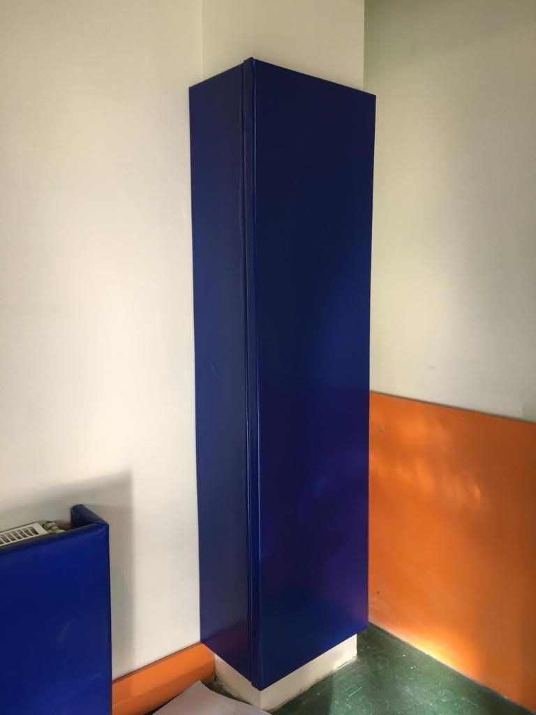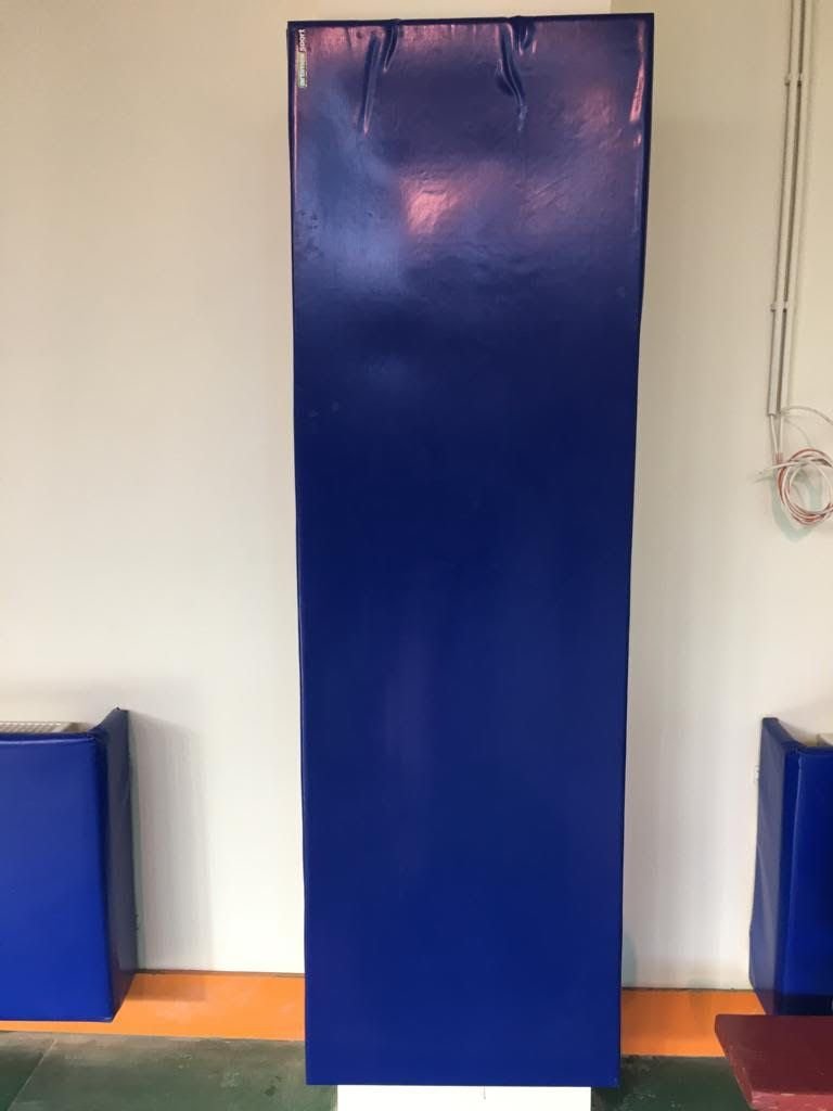 Protectie tip U pentru pereti sali de sport sau grinzi de sustinere, produsa de Artimex Sport, realizata din spuma poliuretanica (burete) cu grosimea de 5 cm si densitatea de 24 kg/mc (la cerere buretele poate avea o densitate mai mare). Acoperita cu material pvc.