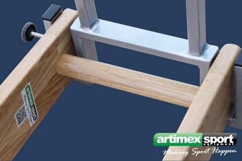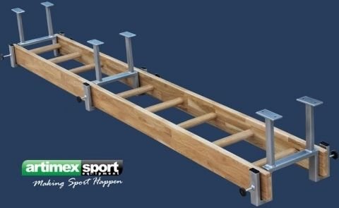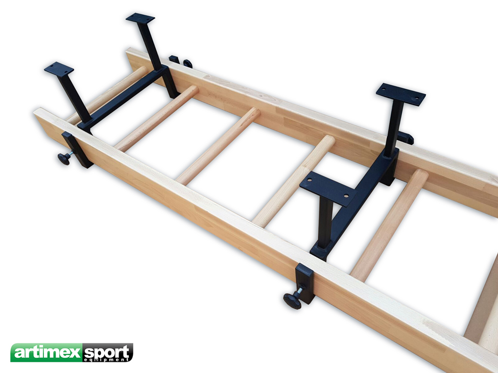 Scara orizontala produsa de Artimex Sport. Lateralele din lemn de stejar imbinat in dinti, iar barele din cherestea de stejar ovale cu diametrul de 40×30 mm, complet lacuita cu lac ecologic. Se monteaza in salile de sport,acasa sau in unitatile de pompieri.