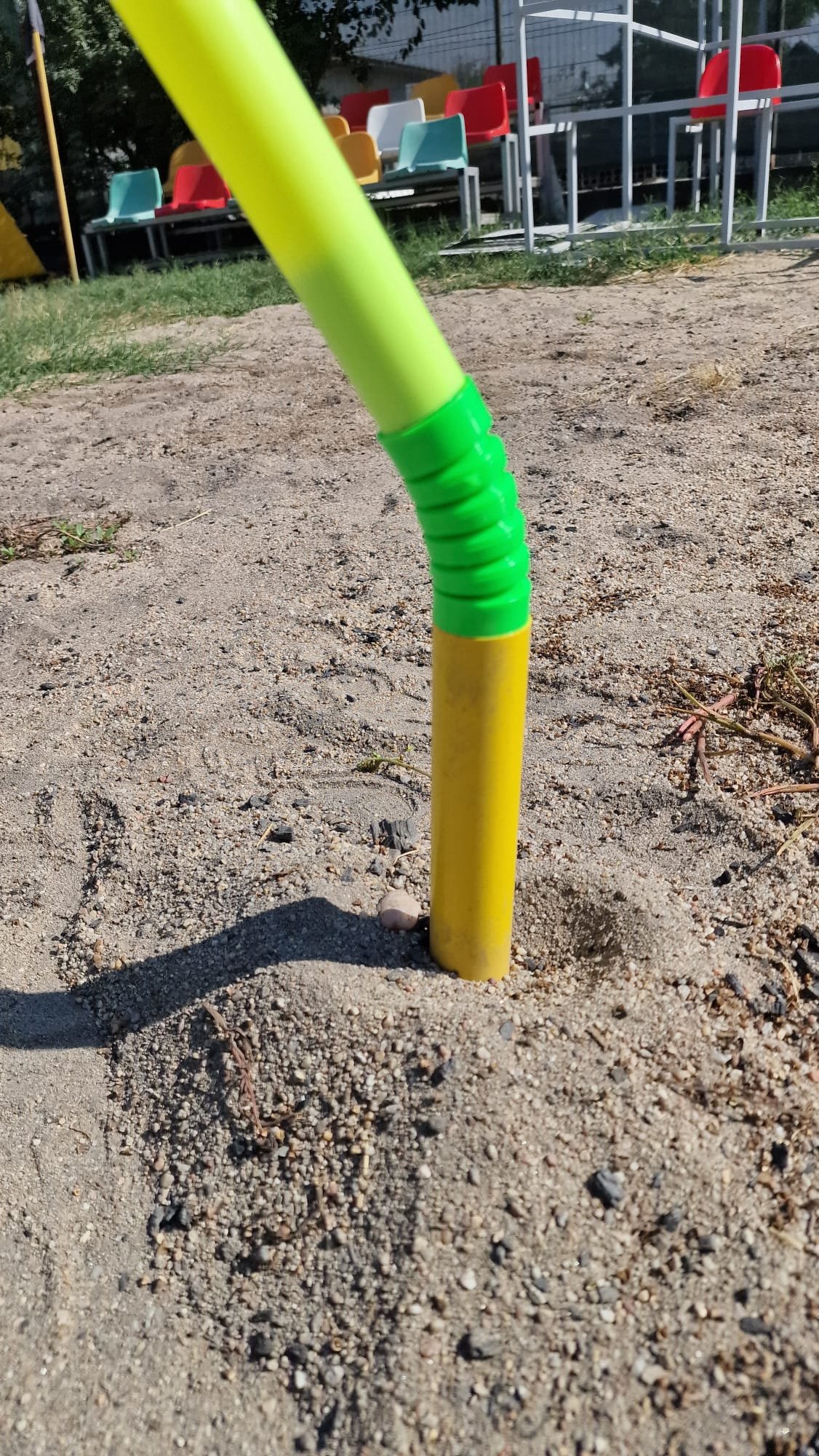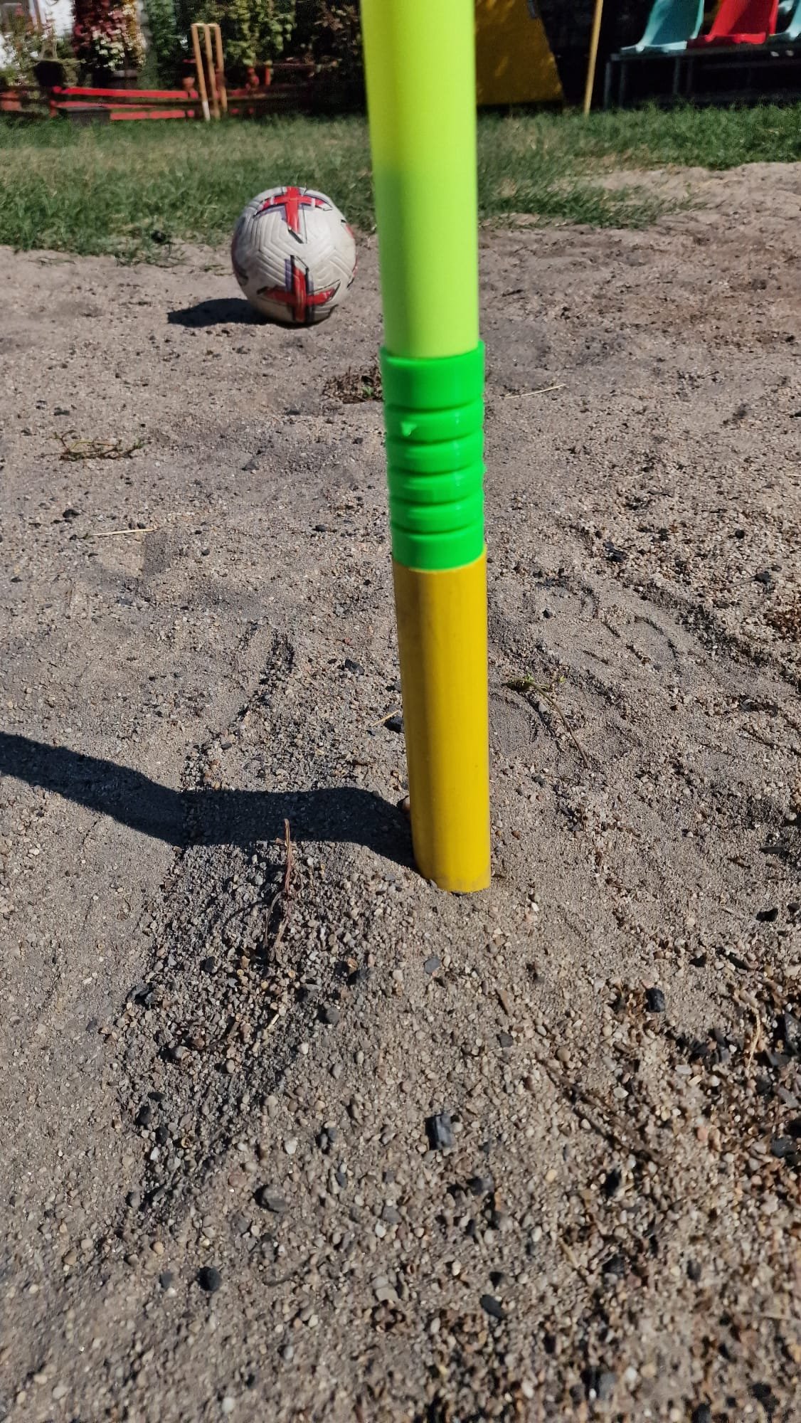 Se livreaza complet cu tubul de fixare in gazon  si fanioanele in 2 culori.
