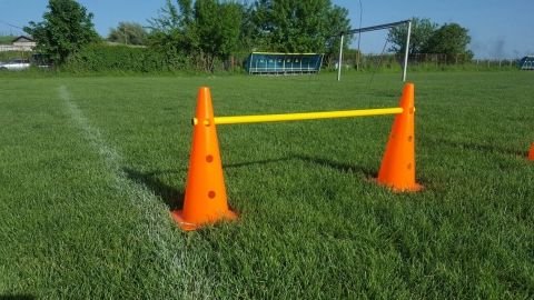 Setul este compus din 2 conuri de antrenament cu inaltimea de 45 cm si o bara din pvc cu lungimea de 1 m