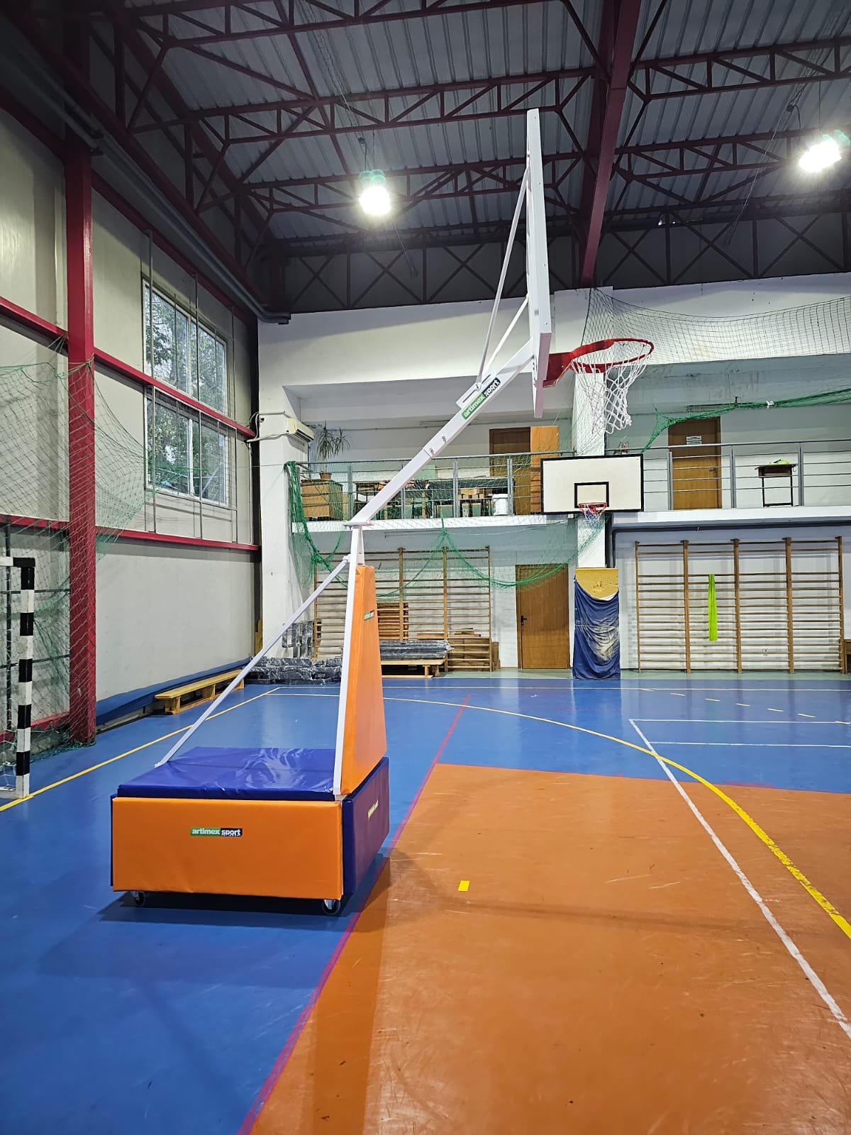 Platforma mobila pentru baschet produsa de Artimex Sport, pentru interior sau exterior, structura din otel, vopsita in camp electrostatic.