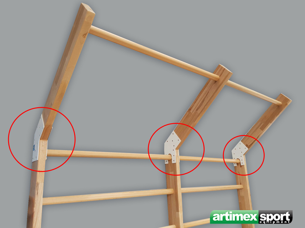 Lateralele (vezi video) spalierului sunt realizate din fag, iar cele 2×9 bare ovale ale spalierului sunt realizate din cherestea de fag cu diametrul de 40×30 mm (vezi video) (la cerere spalierul se livreaza cu bare rotunde cu diametrul de 36 mm, fara costuri suplimentare).