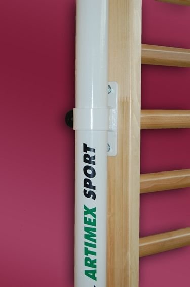 Spalier gimnastica rabatabil produs de Artimex Sport, realizat din elemente lamelare de molid si barele din cherestea de fag si sistem de fixare metalic.