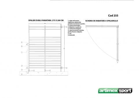 La cerere spalierul rabatabil se poate realiza si la alte dimensiuni. Acest spalier este ideal datorita mobilitatii produsului, se poate utiliza de sine statator, prins de perete sau se poate utiliza pe ambele parti, datorita sistemului batant din componenta lui. Garantie 10 ani