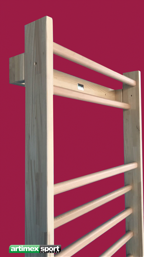 Spalier gimnastica dublu, produs de Artimex Sport, ideal pentru sali de fitness sau de sport. Lateralele (vezi video) spalierului sunt realizate din elemente lamelare din molid, iar cele 17 bare ovale ale spalierului sunt realizate din cherestea de fag cu diametrul de 40×30 mm (vezi video) (la cerere spalierul se livreaza cu bare rotunde cu diametrul de 36 mm, fara costuri suplimentare). Se livreaza montat si cu toate accesoriile necesare montajului pe perete.