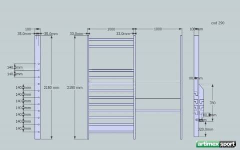 Spalier multifunctional produs de Artimex Sport, formate din 2 bucati, avand fiecare dimensiunea de 2,15 x 1 m.
