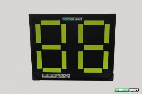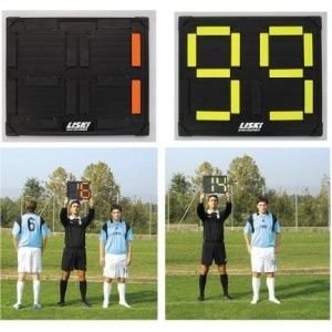 Tabela Manuala de schimb jucatori, doua fete, numerotare de la 1 la 99, culori galben/ portocaliu fosforescent.