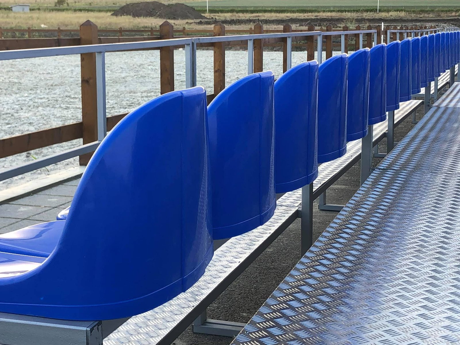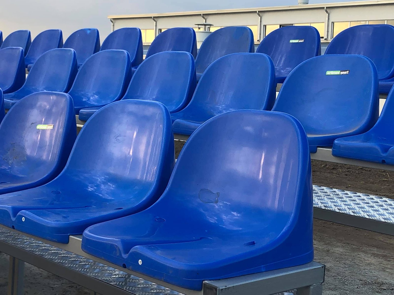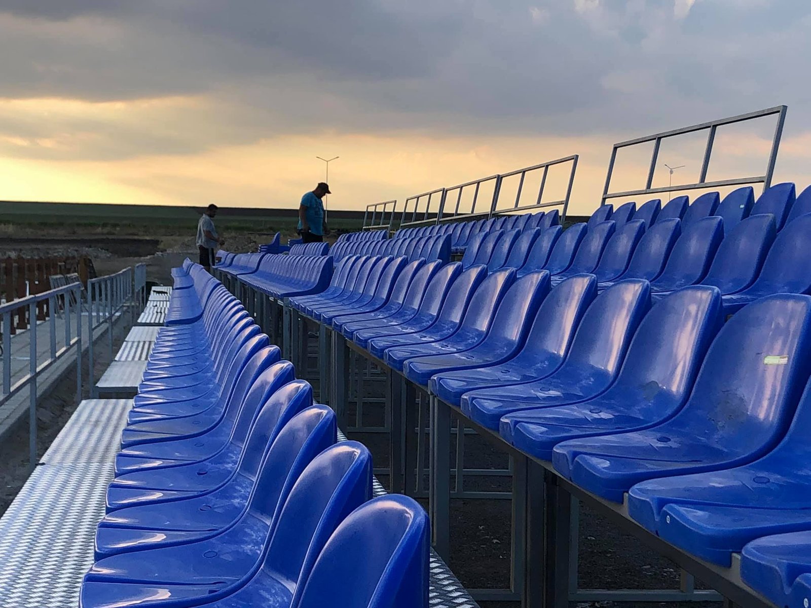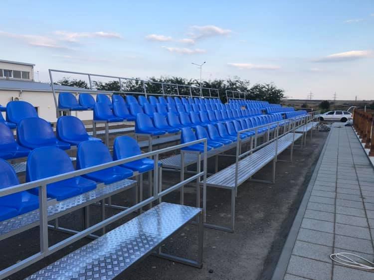 Tribune pentru spectatori model Romania , fabricate de Artimex Sport, realizate din teava rectangulara de 40×40 mm, vopsita in camp electrostatic, cu capacitatea de 96 de locuri, culoarea albastru. Gradena este compusa din 4 module independente a cate 3 M fiecare, cu scara de urcare/coborare la mijloc de 1 M, 24 locuri/modul, asezata pe 4 randuri, iar adancimea este de 2.70 M.