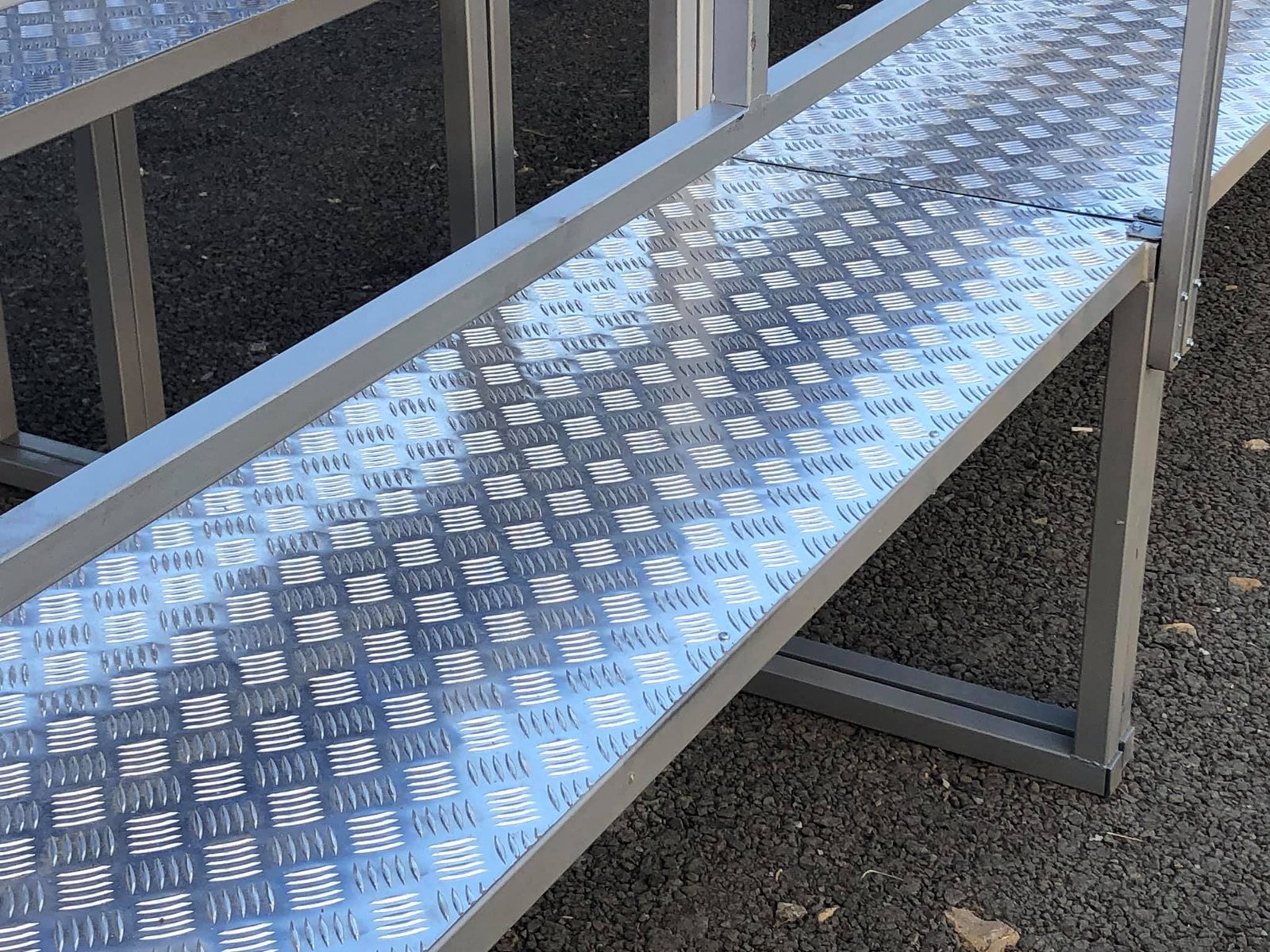 Podeaua este realizata din tabla aluminiu striata, rezistenta la intemperii.